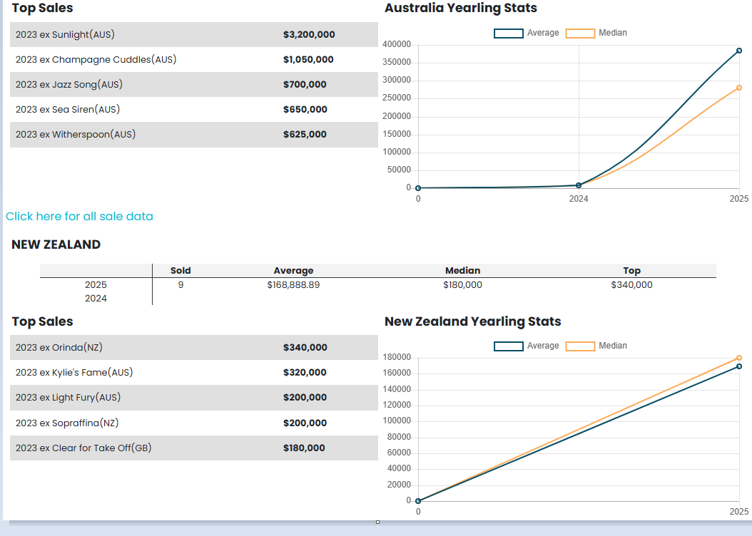 His other first crop yearlings sold at the 2025 Magic Millions for $1,050,000, $700,000, $650,000, $625,000, $625,000 etc.
