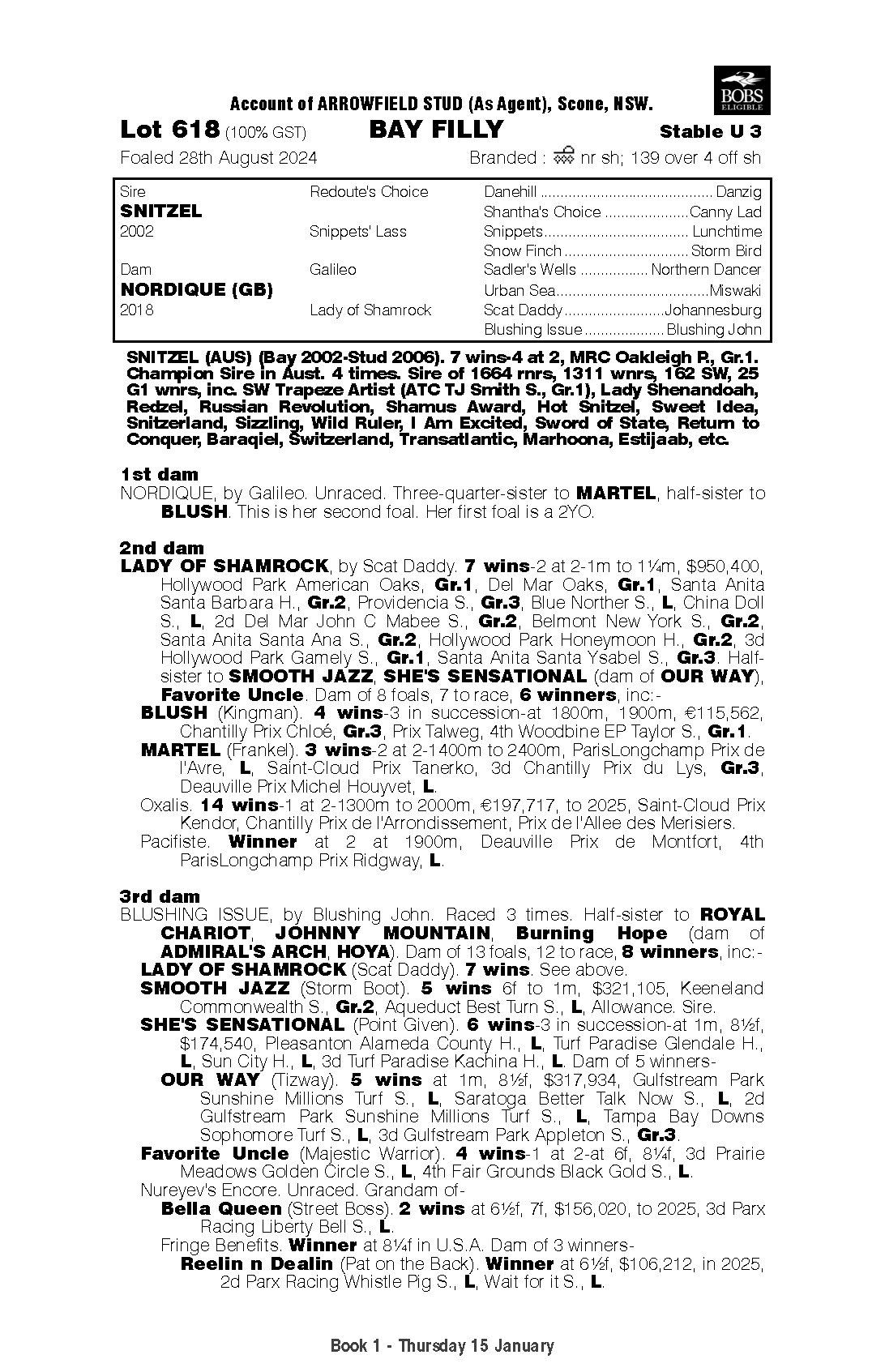 Simply the more BOLD print (BLACK-TYPE) on the catalogue page equals the more high quality horses in the female family. As a flow on, the more high quality horses the more commercially appealing the horse is to the market.