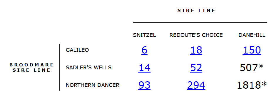 Each thoroughbred pedigree concentrates on the female family not the male line.
