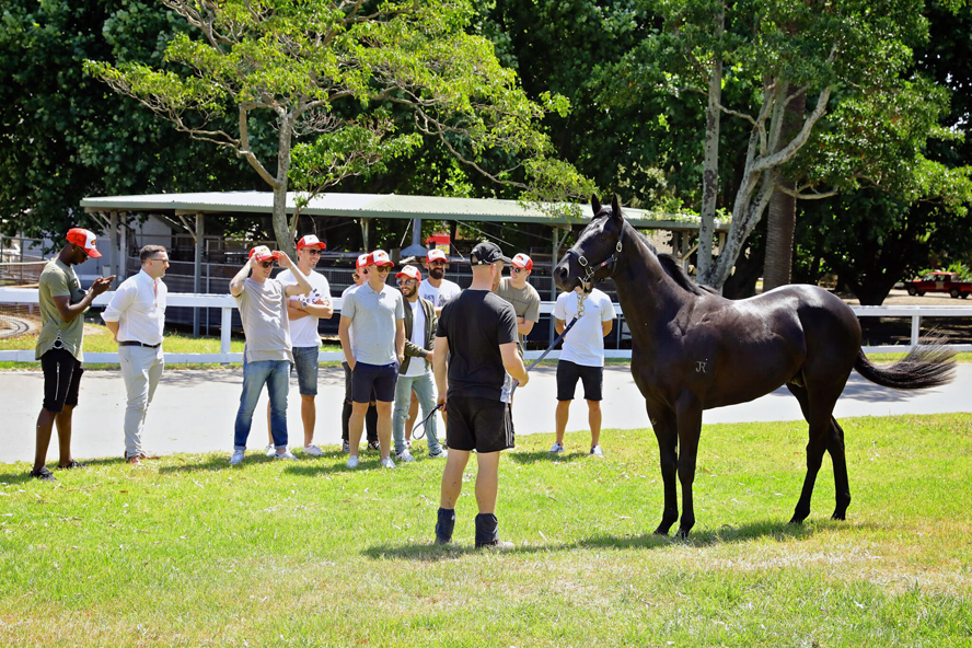 a group of 10 players formed a syndicate and joined Team Dynamic in the ownership of this stunning dark brown unnamed 2yo colt: