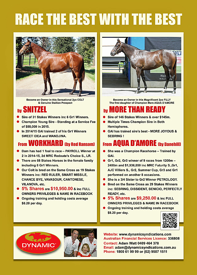 Dynamic Syndications with GAI that this time next year, these stats are again being written up for our website and we will be reporting upon on the rise and rise of the Gai Waterhouse Racing Stables!