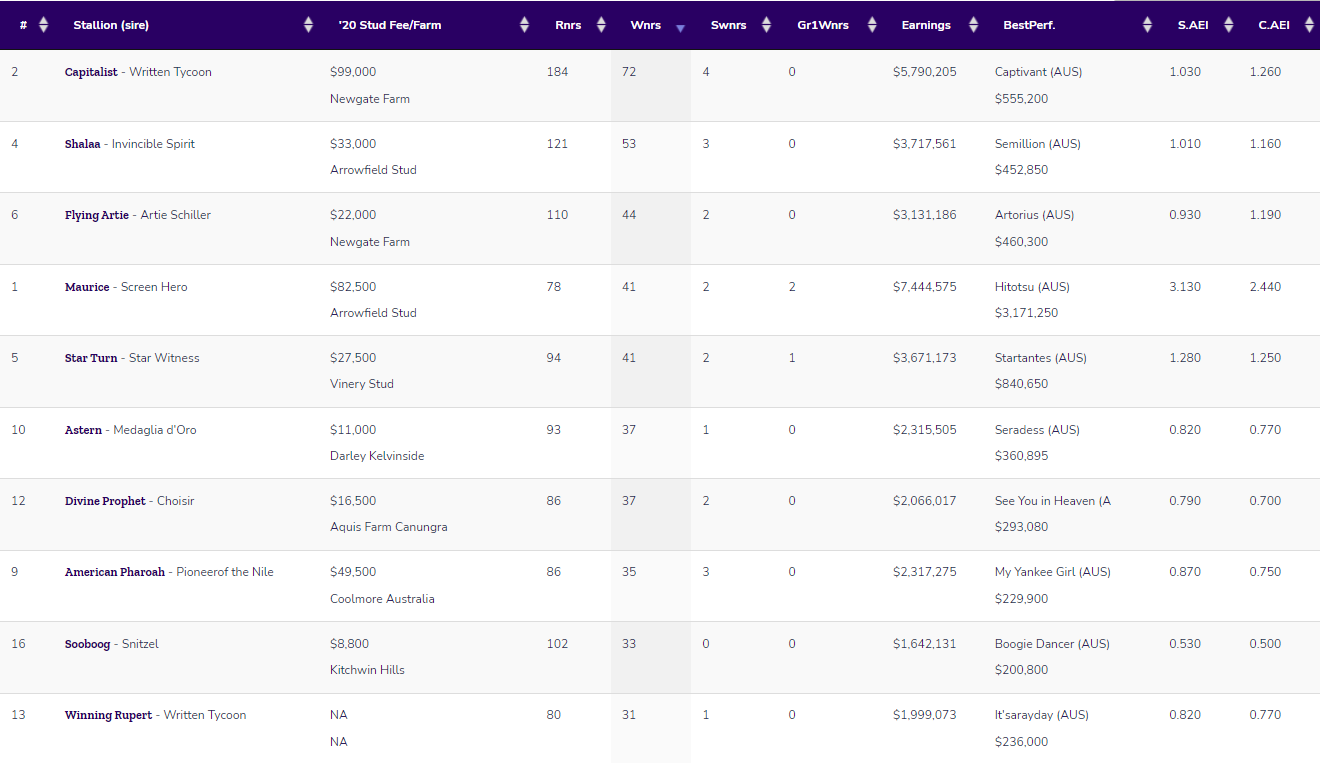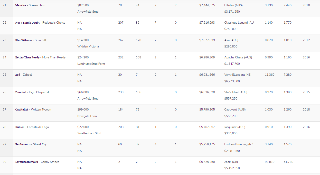 10th by Earnings & 6th by Winners: 93 Runners, 37 Winners, 1 SW
