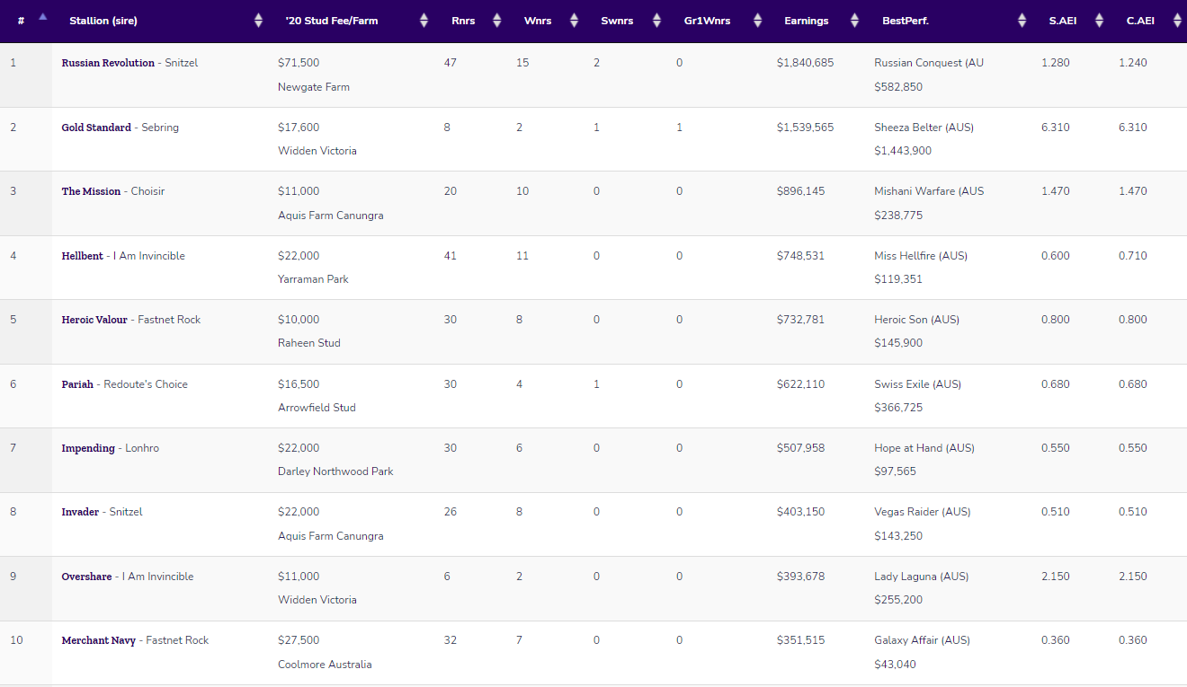 Russian Revolution was crowned Champion First Season Sire, a first for a son of