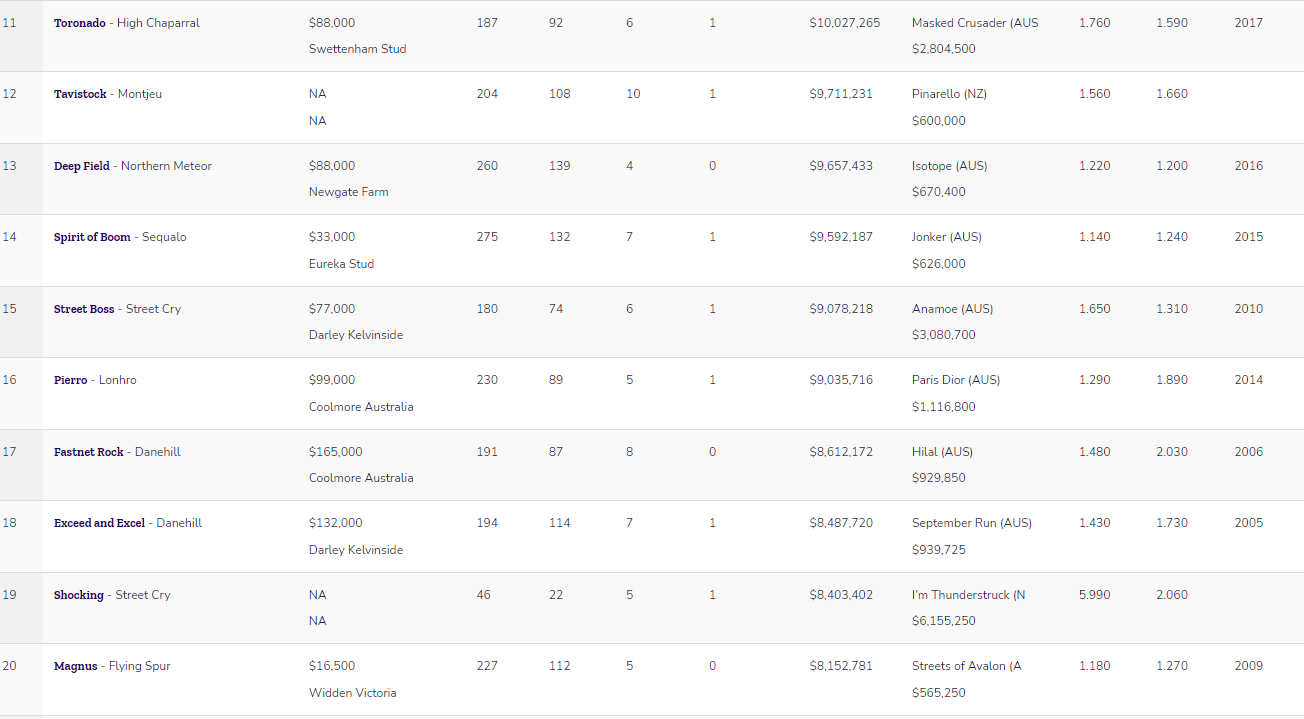 I Am Invincible's first win in the General Sires Premiership (which is decided on prizemoney), it is the