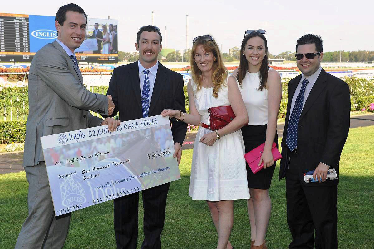 In winning the INGLIS – FIND YOU NEXT RACEHORSE HANDICAP – A Bm 71 for 3yo’s over 1500m, this race attracted an additional $100,000 Bonus Prizemoney Cheque if the winner was a paid up graduate of the Inglis Race Series. Along with the $48,750 + a $20,000 BOBS Bonus, the first prize cheque was a staggering $168,750.