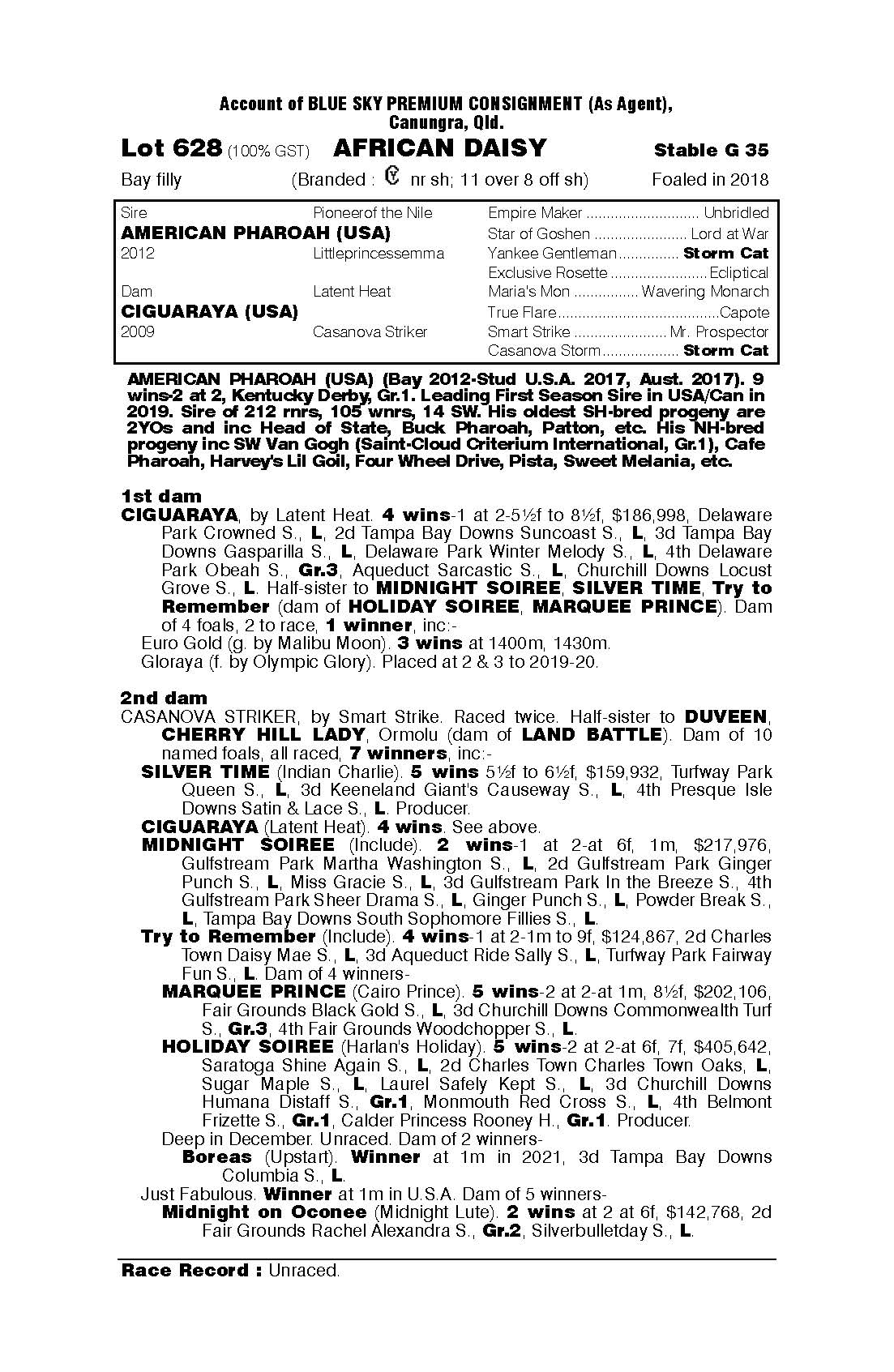 AFRICAN DAISY - by AMERICAN PHAROAH (USA) ex CIGURAYA (USA).