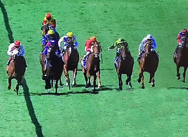 ASALWAS moved up to settle 4th on the fence one pair back. As the field settled into the rhythm ASALWAS found herself one pair back on the heels of the leader tracking the speed until the home turn.