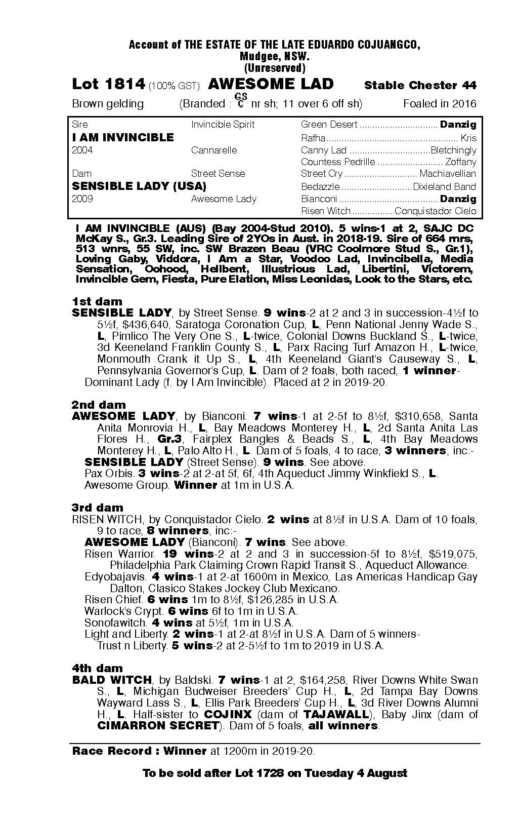 AWESOME LAD was only being offered to the market to dissolve the racing assets of Eduardo Cojuangco who passed away on the 6th June.