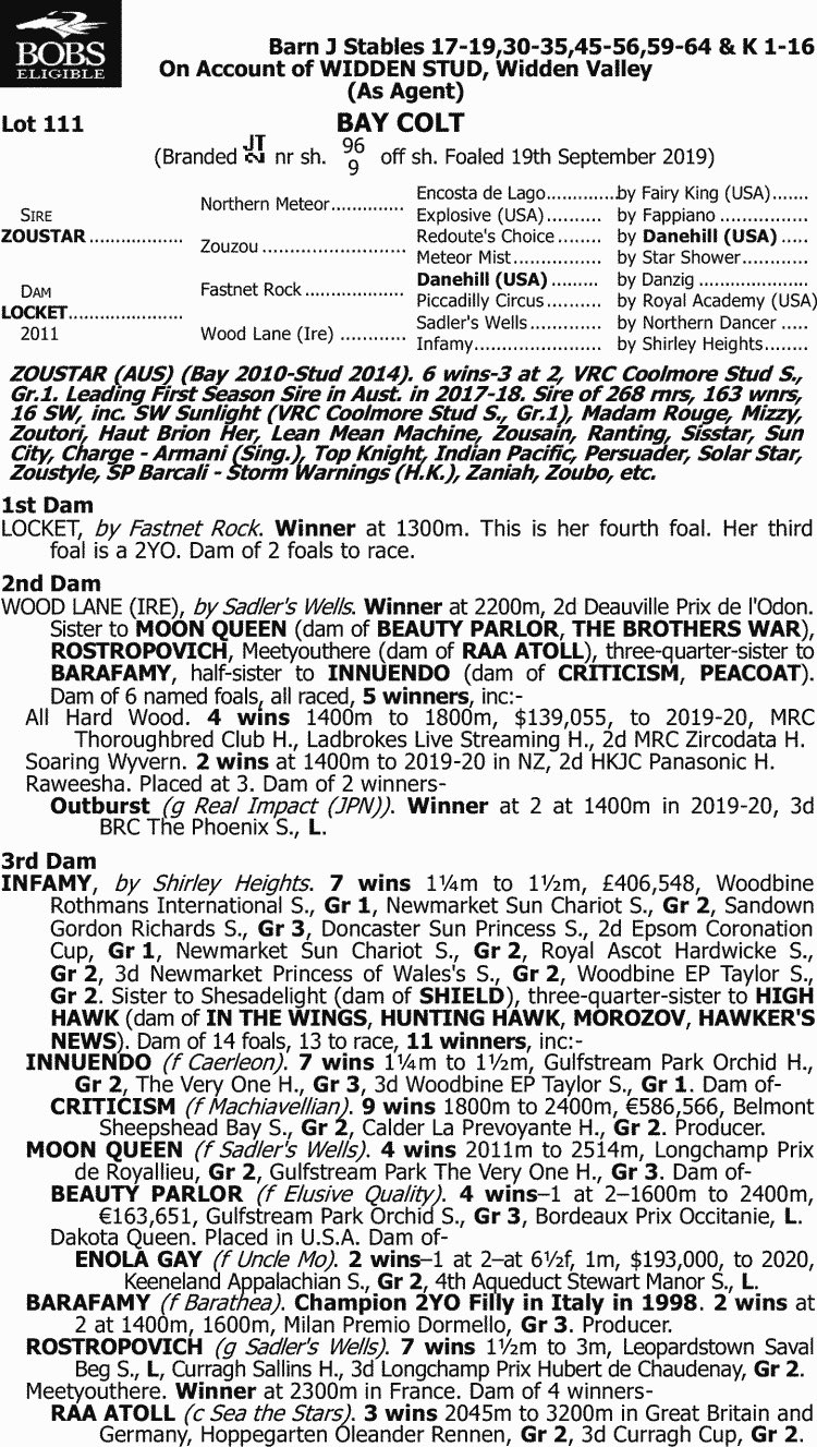 outstanding son of top young sire ZOUSTAR from the talented mare LOCKET (by Fastnet Rock) was knocked down for just $90,000 + GST.