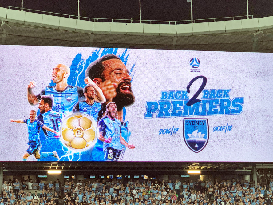 After the match the sign on the Big Screen said it all - BACK 2 BACK PREMIERS !