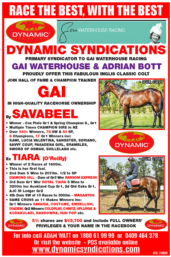 Call us straight away and chat with Adam Watt at Team Dynamic about how to reserve a share in the Savabeel x Tiara Colt.
