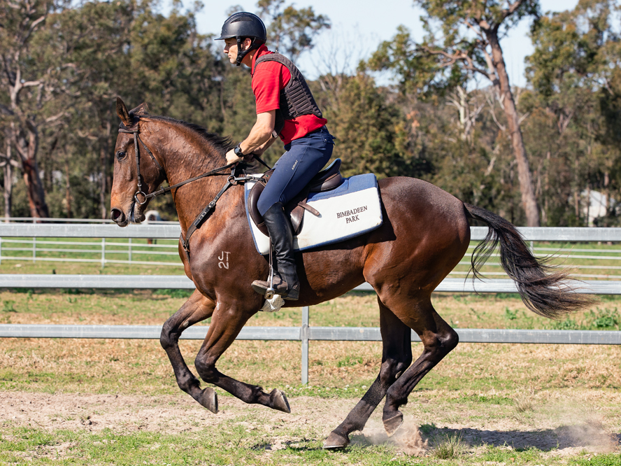 He’s a great type; big, strong, and very athletic, he’s conformation is flawless, and he is sound of wind and limb, with clean X-rays and a Grade 1 endoscopic evaluation. He has broken-in superbly and under saddle is exciting Australian Olympian Shane Rose with his intelligence and easy flowing, effortless action everytime Shane works him.