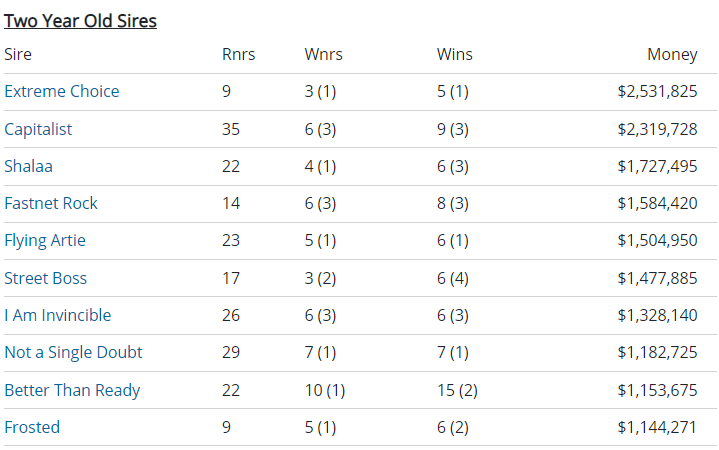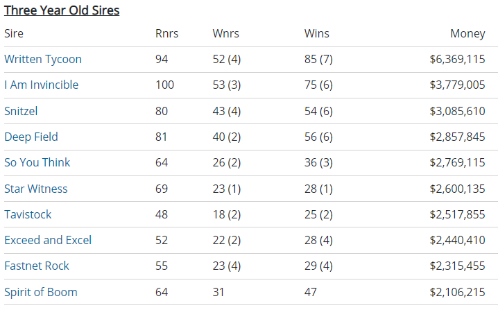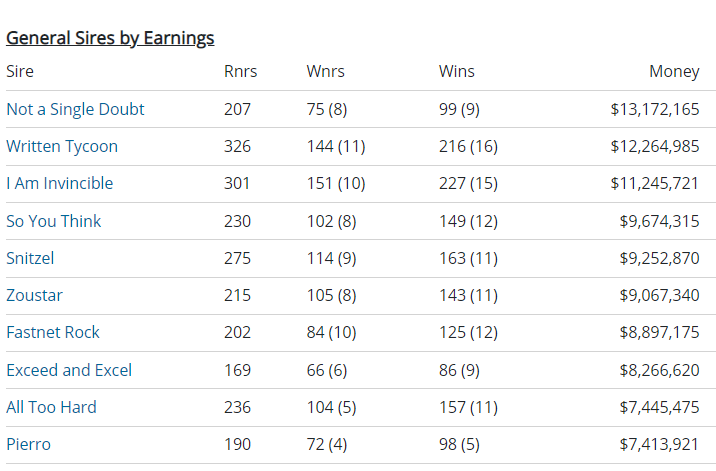Australian Sires Premierships and see which stallion's are doing the job and which are not performing as anticipated.
