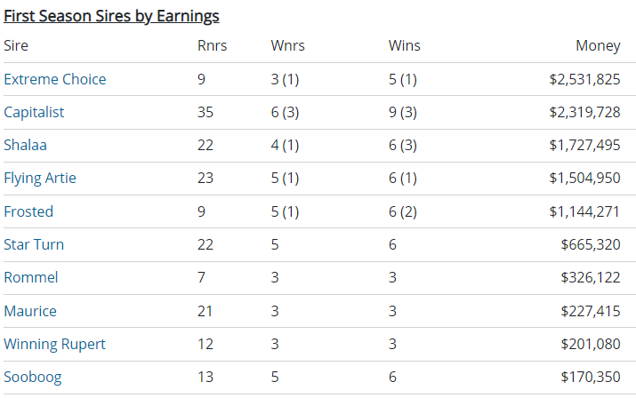 Will these three (3) young sires repeat what is happening in 2020-21 and be leading the First Crop Sires Premiership at this time next season?