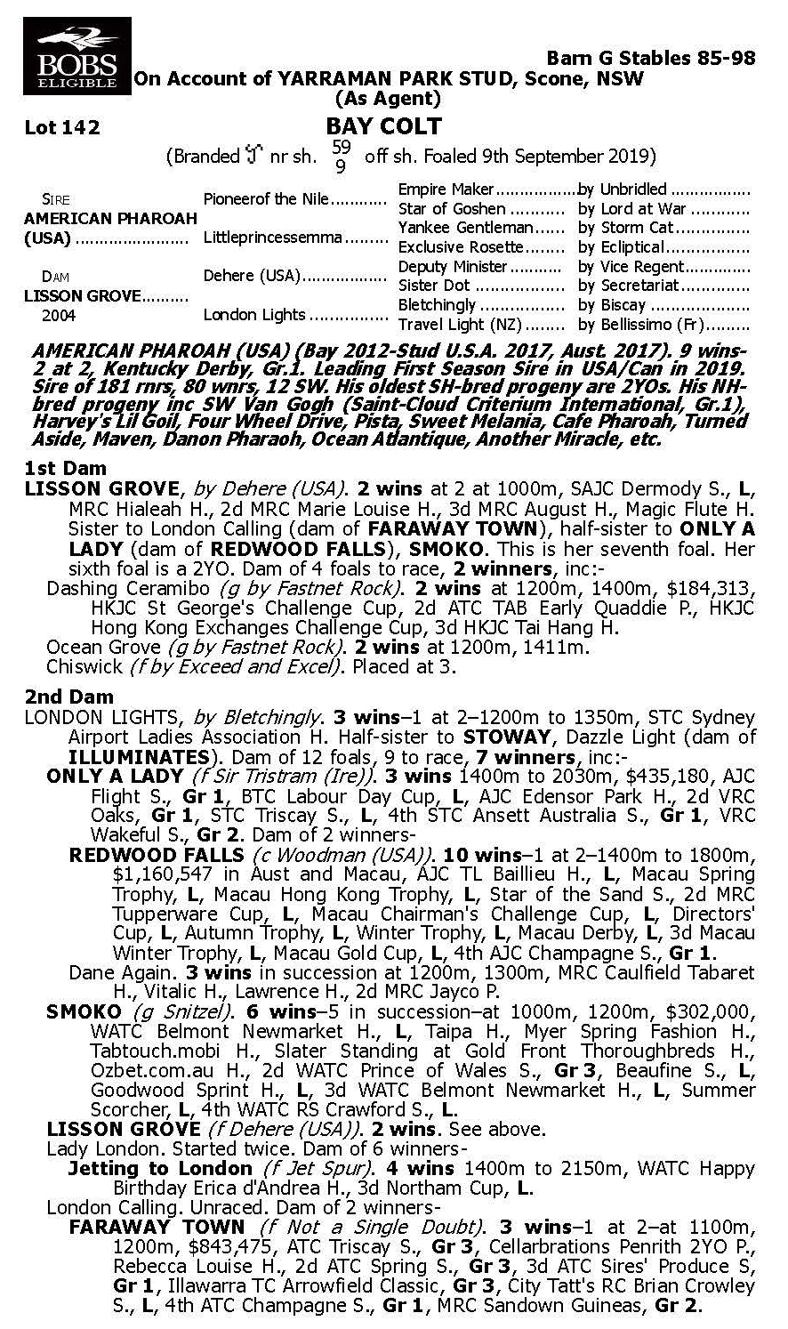 So, OUR COLT is: (1) by a World Champion racehorse (2) by a Champion Young Sire in the USA (3) from a Leading Broodmare Sire and (4) the cross is striking at 100% success, (5) Our Colt is the only colt bred on this cross in the Southern Hemisphere, (6) Our Colt is from a Stakes Winning mare (7) GAI and ADRIAN will train Our Colt. They have quite a few by this Sire in their yard and they are overjoyed in what they are showing to date.