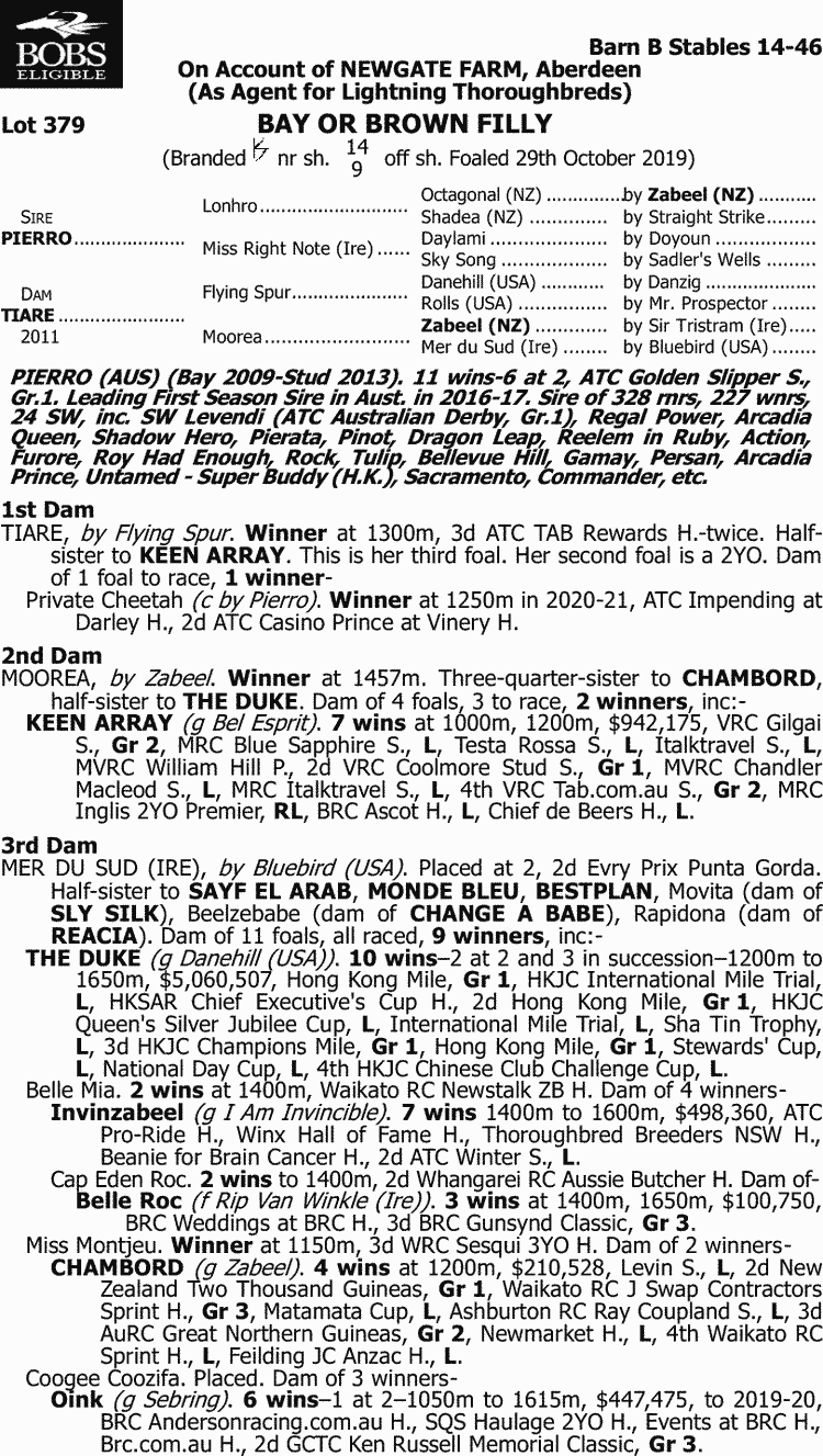 We have a fantastic FILLY by Champion Racehorse and Champion Young Sire PIERRO (by Lonhro) who simply cannot do anymore with his progeny than what he is achieving to date, and the success will certainly continue.