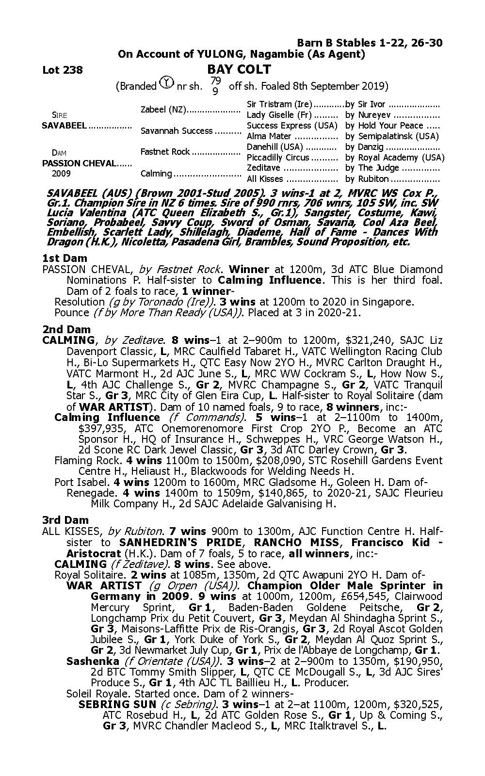 COLT: SAVABEEL x PASION CHEVAL (by Fastnet Rock)