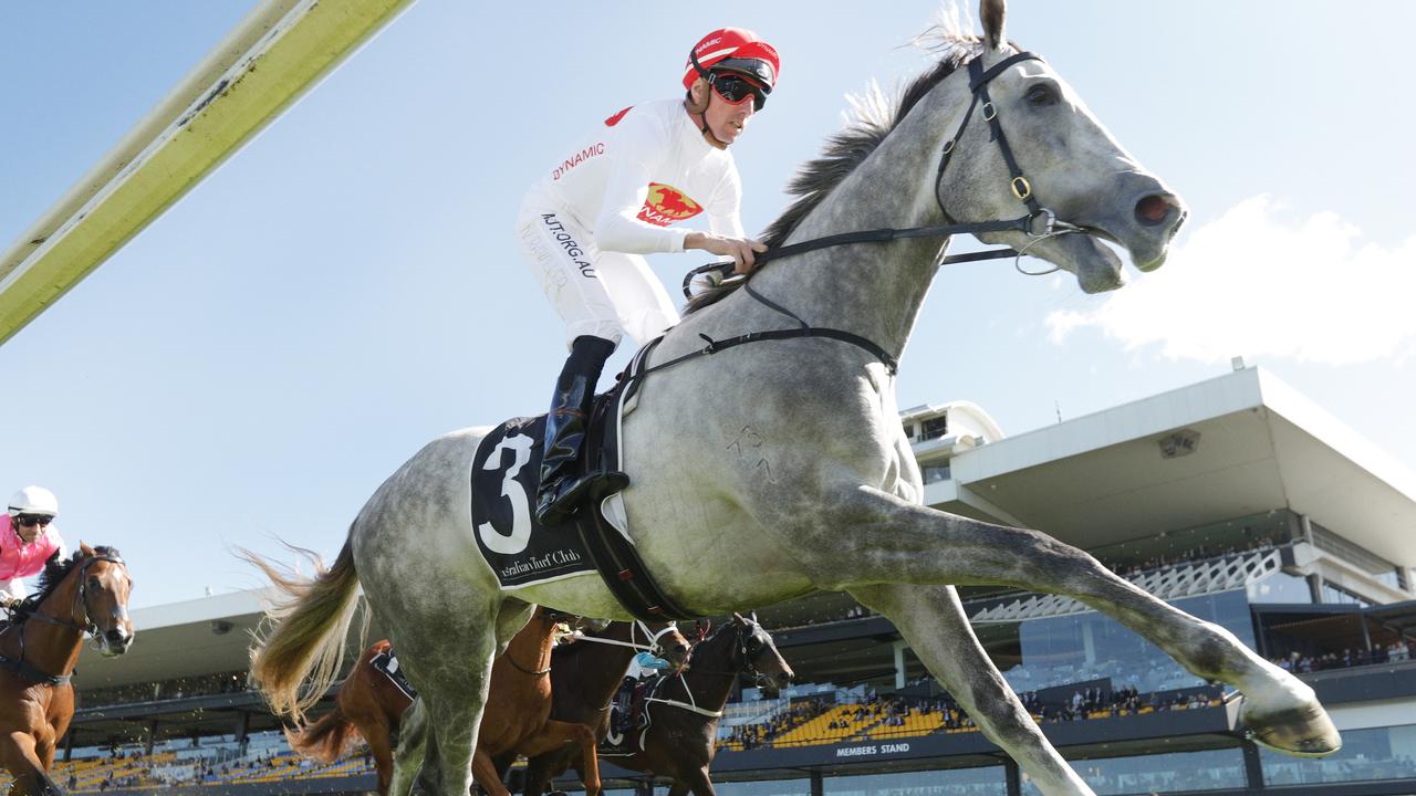 Love Tap was conspicuous again and not just because of his grey coat. He was taking on older, more seasoned horses over an unsuitable 1200m course but finished powerfully wide out to win.