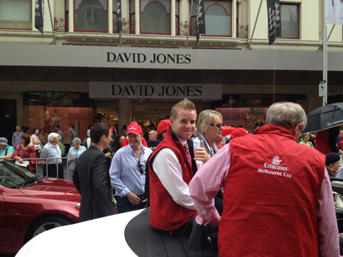 Tommy Berry was all smiles at the Melbourne Cup Parade Today