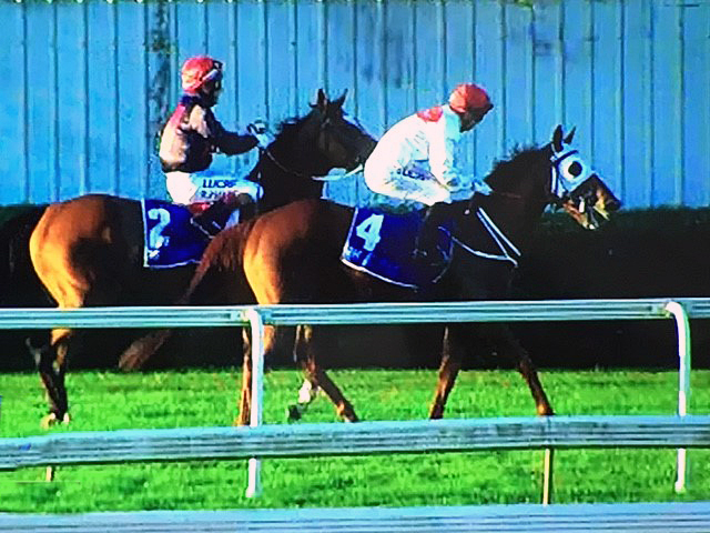After 200m Boris rolled forward with Sony Legend sitting at our girth and Savannah Dream went back to get the trail.