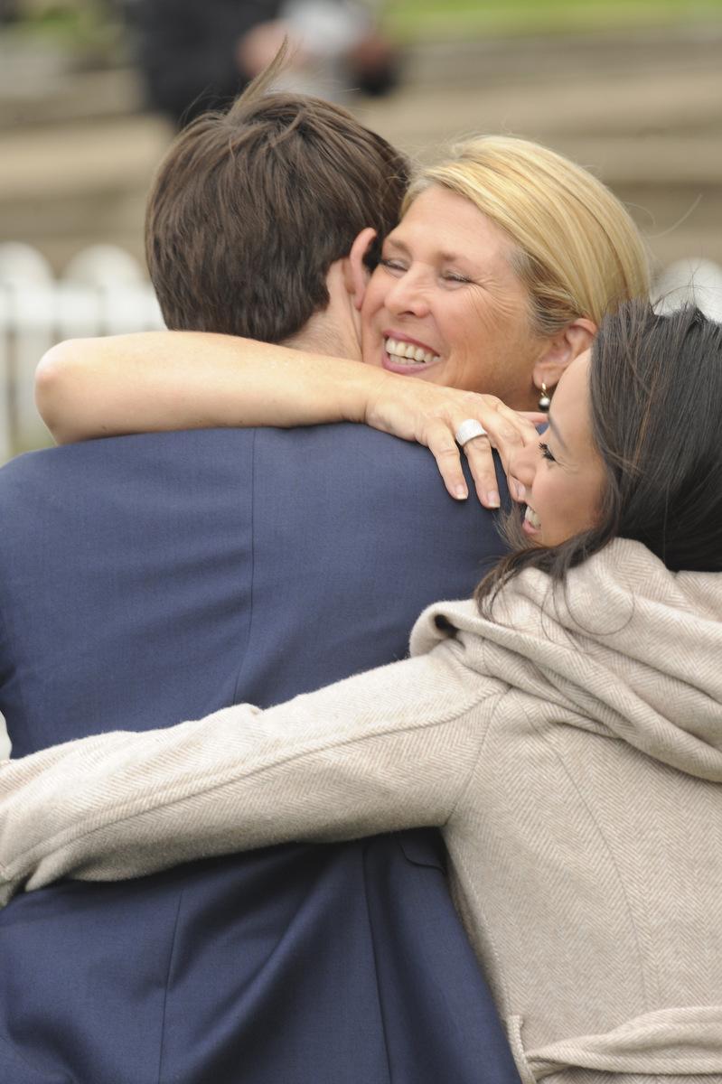 James gets a well deserved congrats hug from his mum Bernadette and wife Monica