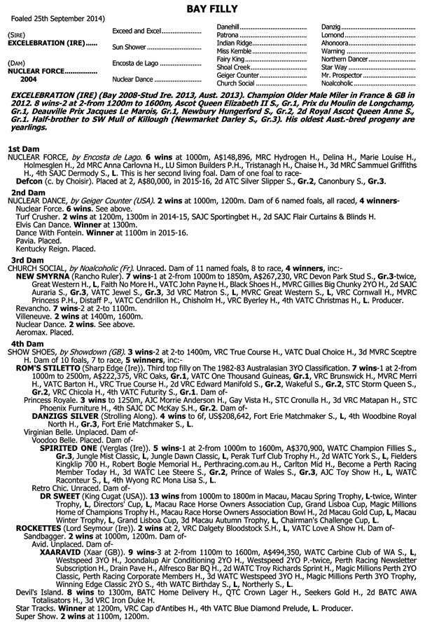 Lot 238 Inglis Premier Sale - EXCELEBRATION x NUCLEAR FORCE Yearling Filly - 1/2 sister to DEFCON