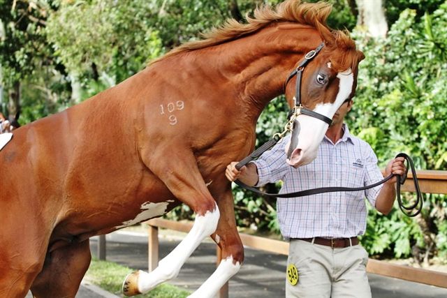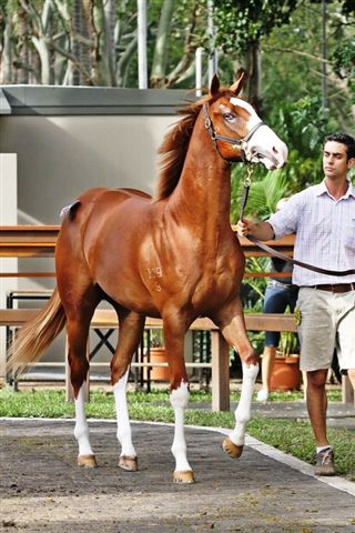 DETTORI as a yearling – He had plenty of publicity because he was the image of a industry favourite in APACHE CAT. In fact prior to the 2011 Magic Millions yearling sales, he was written about in many publications because of his striking white markings and awesome “blue-eye”.