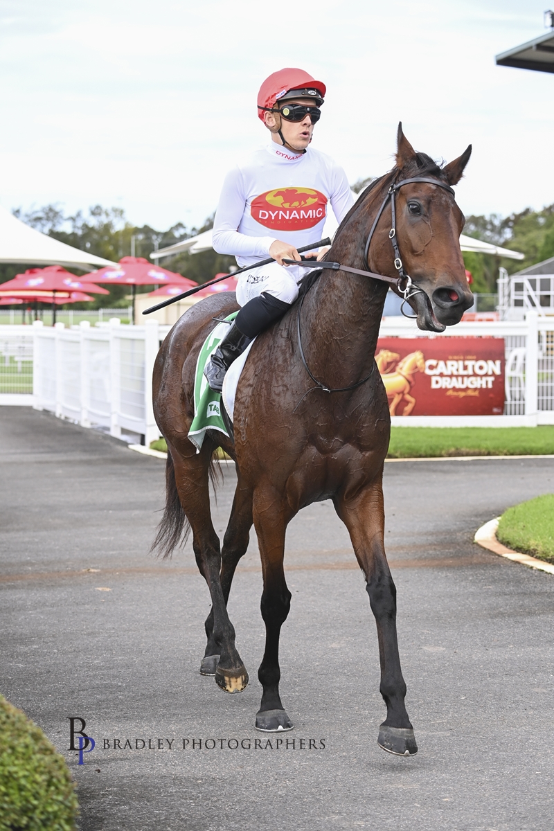 AFRICAN DAISY flew the lids and landed a length in front and Brodie Loy simply steered her across the face of the field to find the fence and as anticipated, Gem Flight worked up to sit at our girth and then rolled 3/4 length in advance, as Brodie restrained
