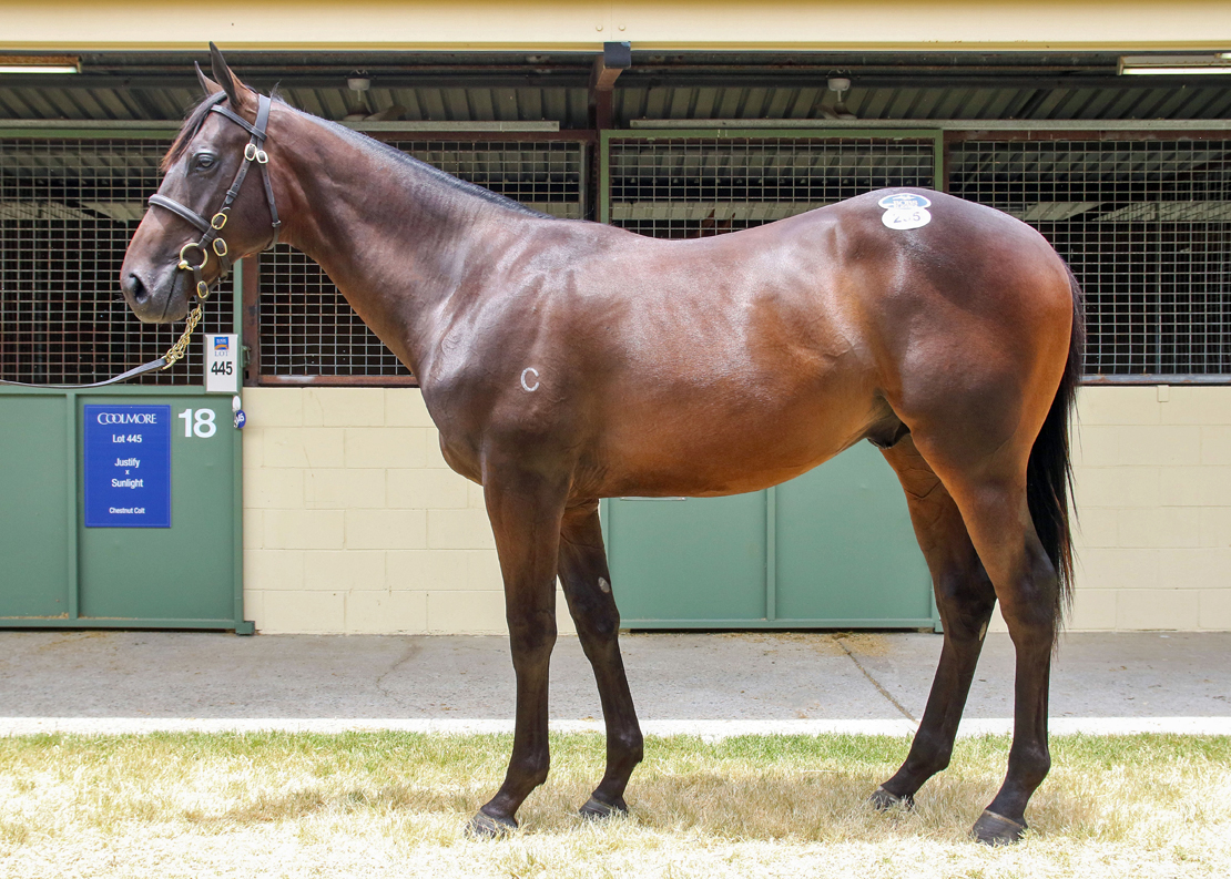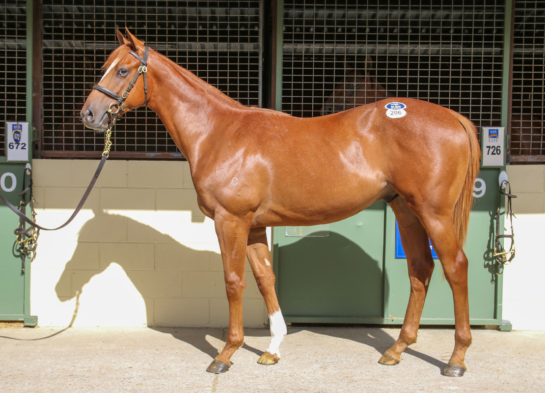 LOT 206 is a Captivating Chestnut COLT by Boom First Crop Sire JUSTIFY (USA) from ORONTES a daughter of Australia’s Champion Broodmare Sire REDOUTE’S CHOICE.