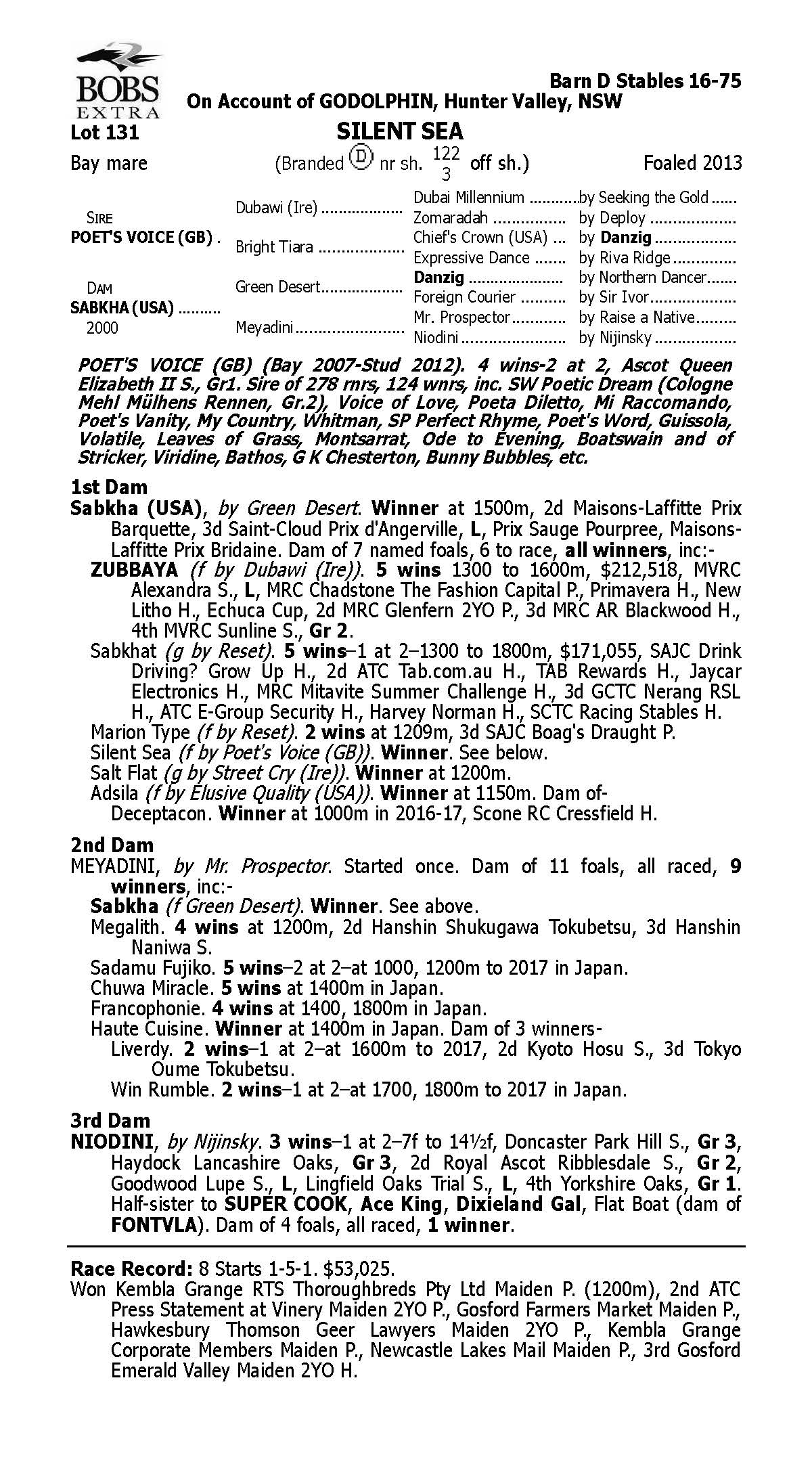 (HORSE 2) Lot 131 SILENT SEA – Poet’s Voice (GB) x Sabhka (USA).