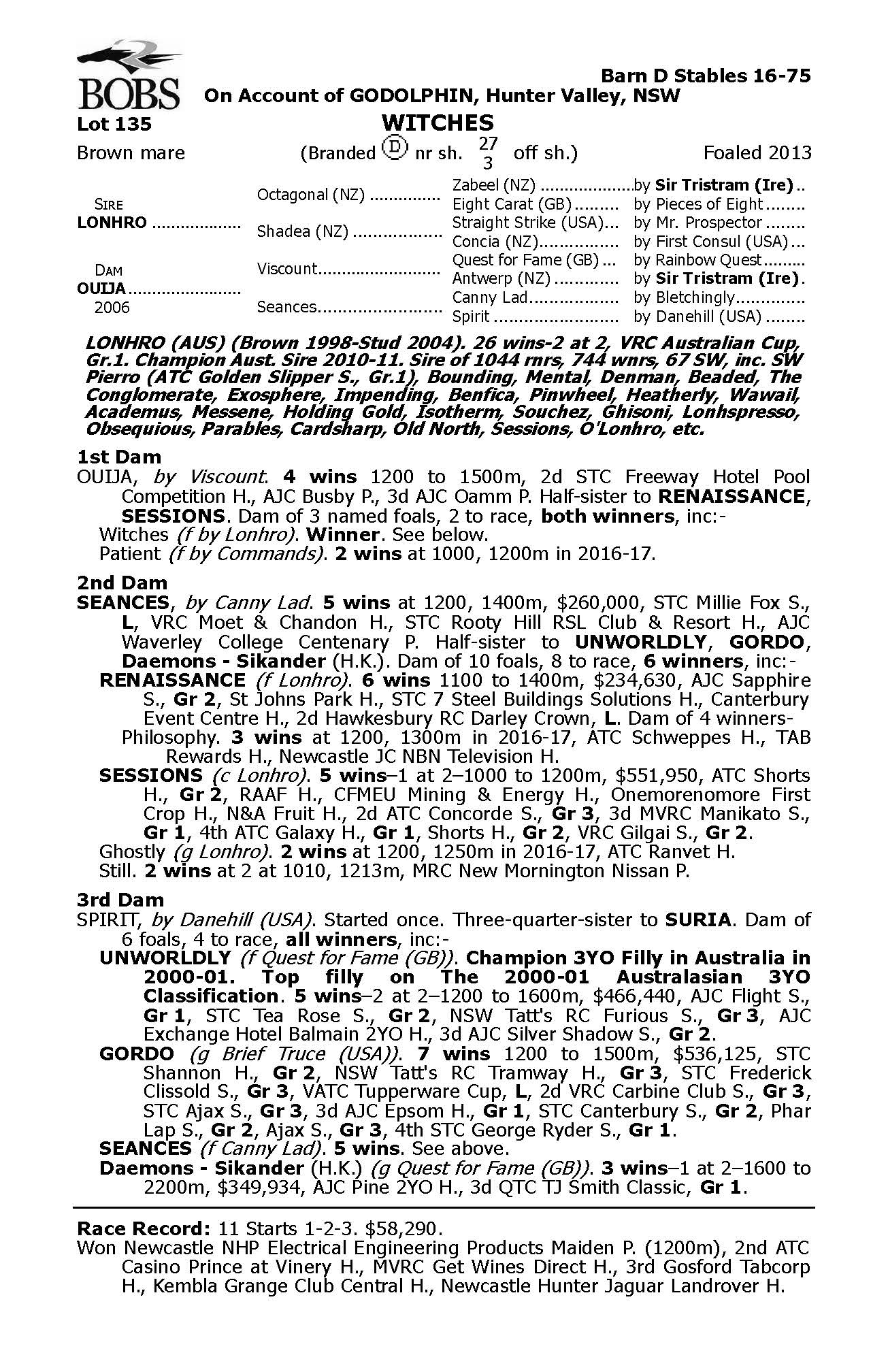 (HORSE 1) Lot 135: WITCHES – Lonhro x Quija