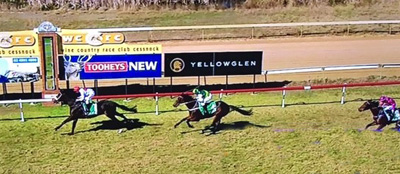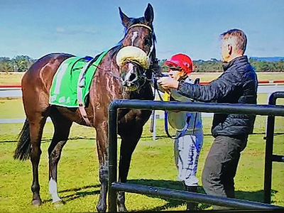 Christian kept MAGENTAZ under a hold to the 400m and then pushed the go button and the pair zoomed away opening up a 4 length lead with 150m to run. Christian took a peak over his shoulder and saw there was nothing coming so with about 50 metres remaining, he allowed MAGENTAZ to canter to the line without urging.