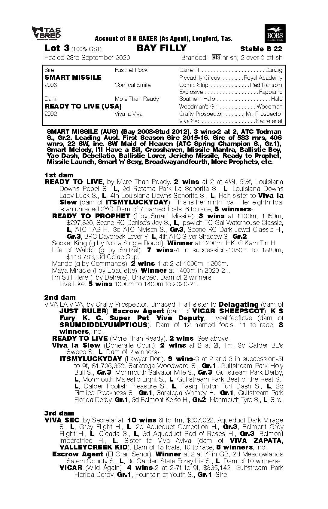 LOT 3 SMART MISSILE x READY TO LIVE (USA) - Sister to READY TO PROPHET at the saleyard