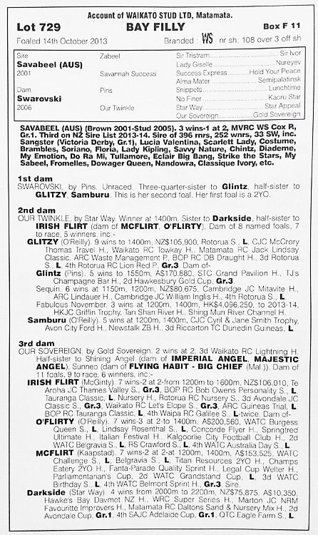 She was Lot 729 offered by WAIKATO STUD Matamata.