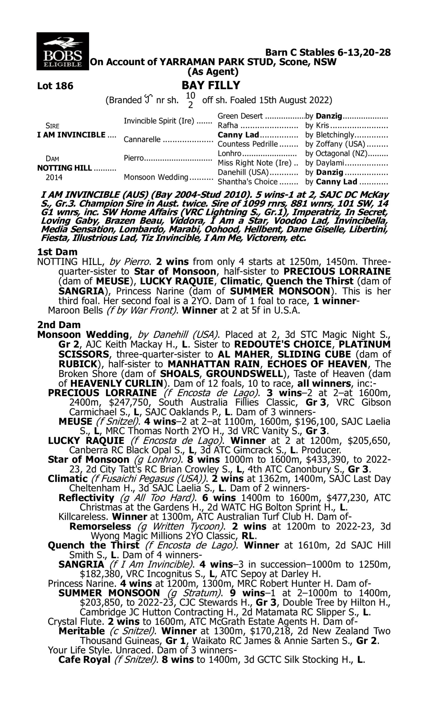 LOT 186 $1.8million I AM INVINCIBLE x NOTTING HILL (Pierro) Filly