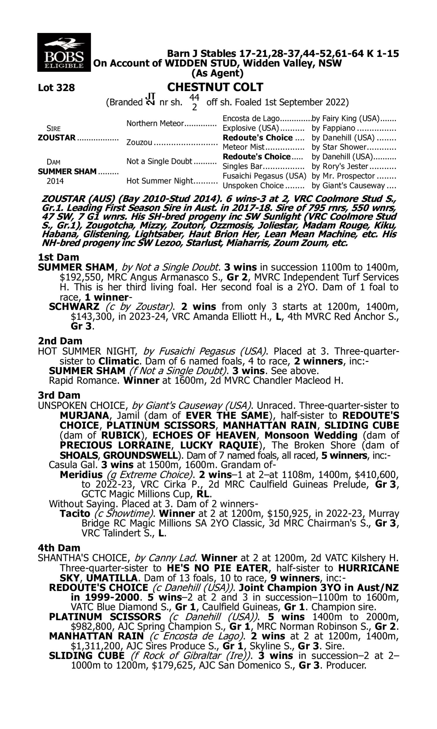 Lot 328 - $1.55million ZOUSTAR x SUMMER SHAN (Not A Single Doubt) Colt