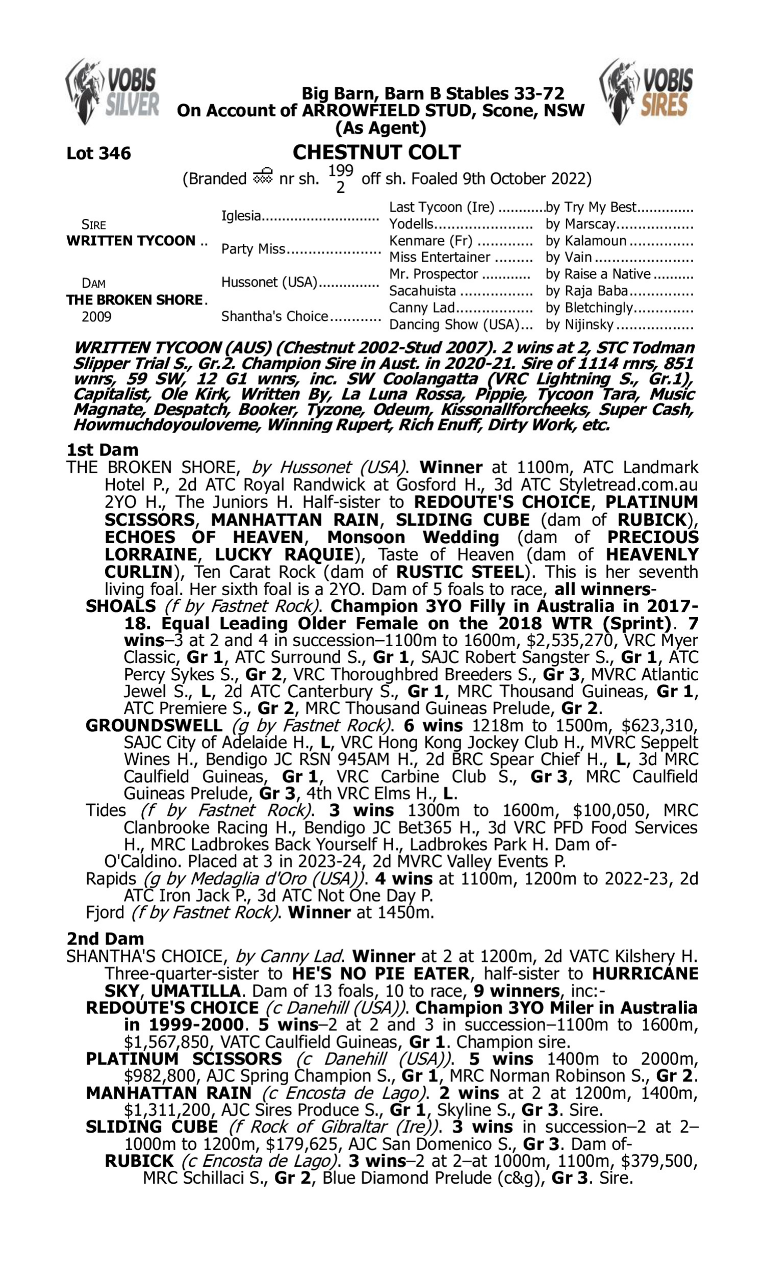Lot 346 - $1.35m WRITTEN TYCOON x THE BROKEN SHORE (Hussonet) Colt