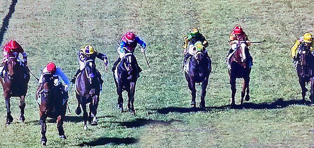 12.33 yet he was still two lengths in front of the horse sitting second and eventual runner-up named The Pres who had a