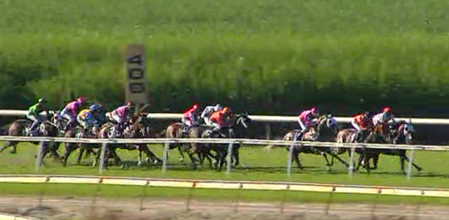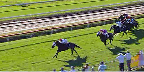 Dynamic 3yo Filly ACTION BUTTON (Choisir ex Carlton Show) in magnificent order at Murwillumbah this afternoon and the Sky Channel