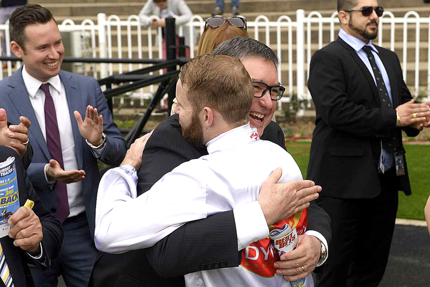 Team Dynamic boss Dean Watt & Tommy Berry celebrate with a winner's hug