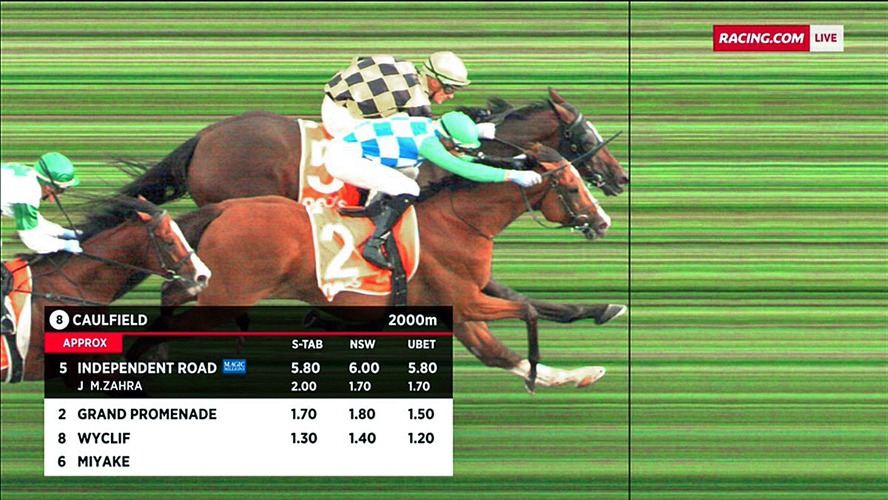 Independent Road ($7) scored by a short-half-head from Grand Promenade ($4.40) with the $2.60 favourite Wyclif a length away third.