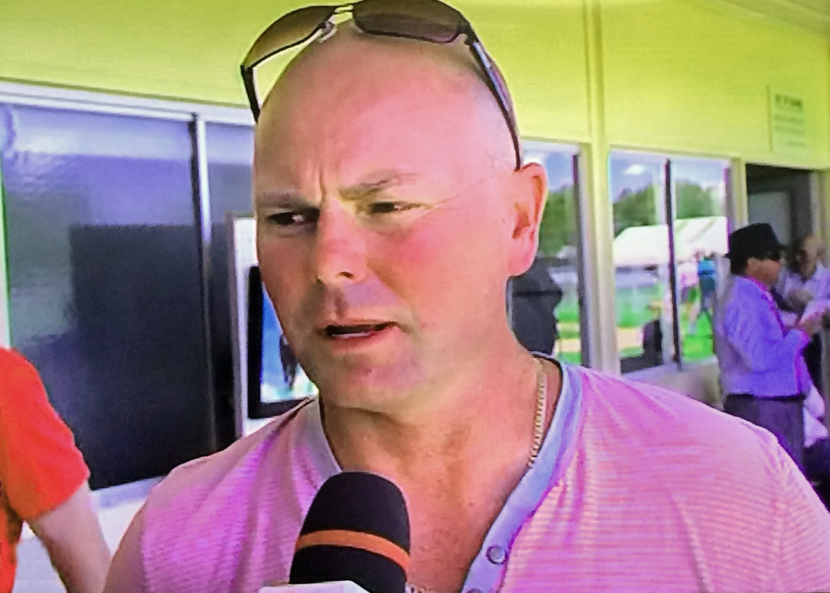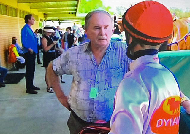 Trainer Matthew Dunn Co-owner Ross Gall talks with Tim Bell