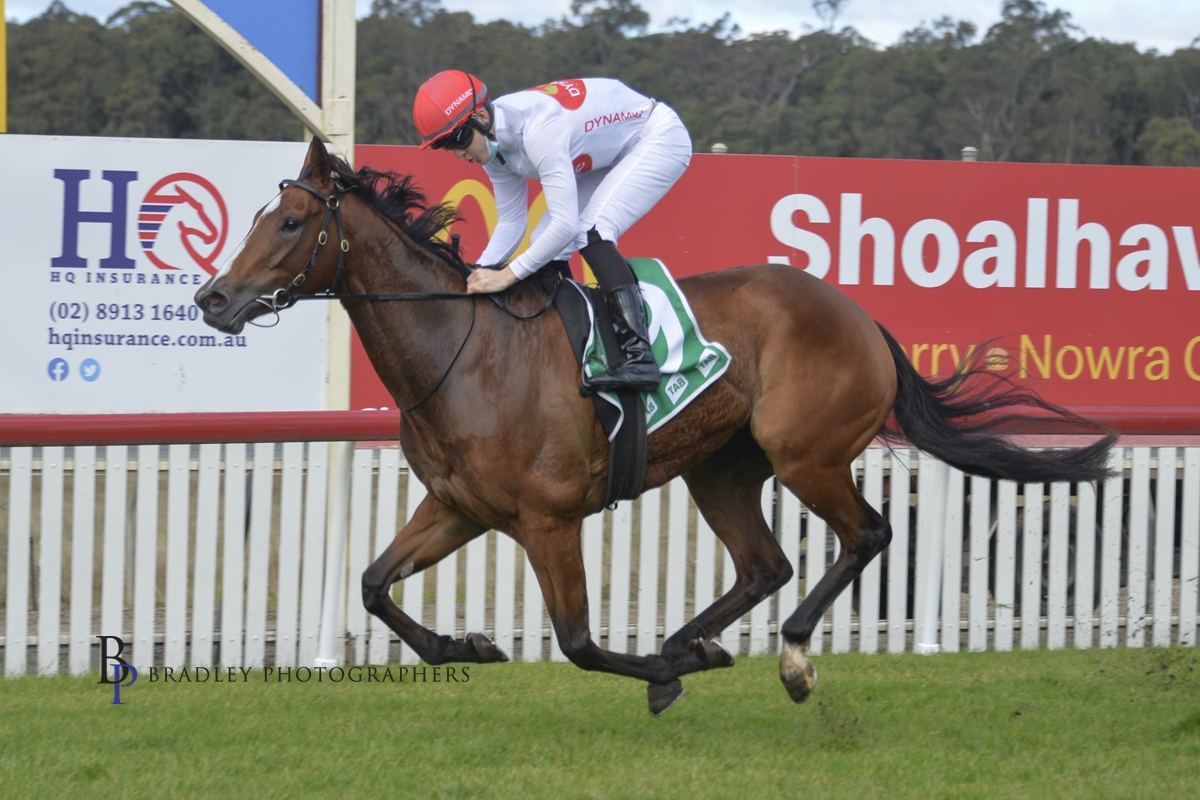 eased down, widening 3.3 length Win in Race 1 at Nowra on Friday, the HQ Insurance 1400m Maiden Plate when ridden by