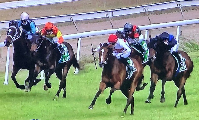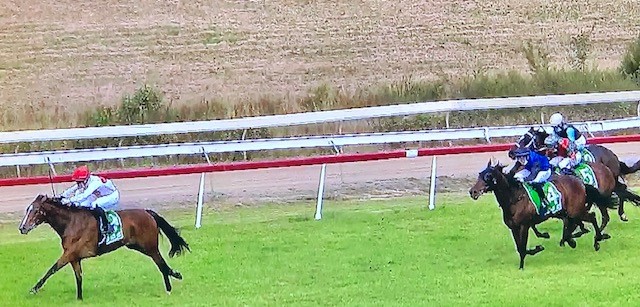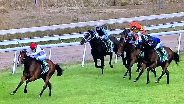 Here at Nowra, she drew barrier 7 in a field of 7 runners after scratchings. Jumping away stylishly, Brodie allowed our filly to roll forward under her own speed, after our speed map had the favourite, Law Party wanting to lead and Choice Deel would also be forward to eyeball it. However, what was unexpected was the 33/1 hope Aphrodotti would want to be there from barrier 1, as its rider pushed along to hold the fence, forcing