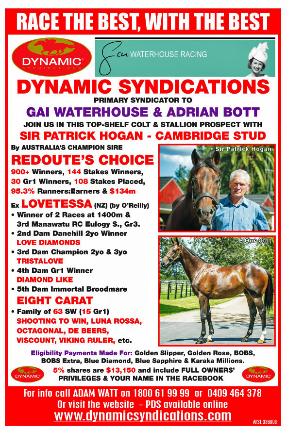 Naturally, being Sir Patrick Hogan's favourite female family, his desire to race this spectacular Colt in Australia with Dynamic Syndications and having the Colt trained by Gai Waterhouse was very exciting and Sir Patrick has joined the co-ownership team to race a Colt he believed was something special.