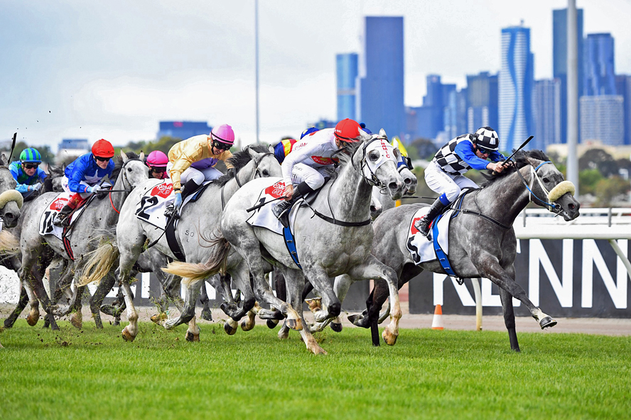 It’s a sight to behold, as a field of magnificent grey thoroughbreds, ranging from the ghostly grey to the darker steely grey, parade before a heaving crowd of racing fans craning their necks to glimpse the spectacle before the horses head to the starting gates and then race to the post offering a feast for the senses.