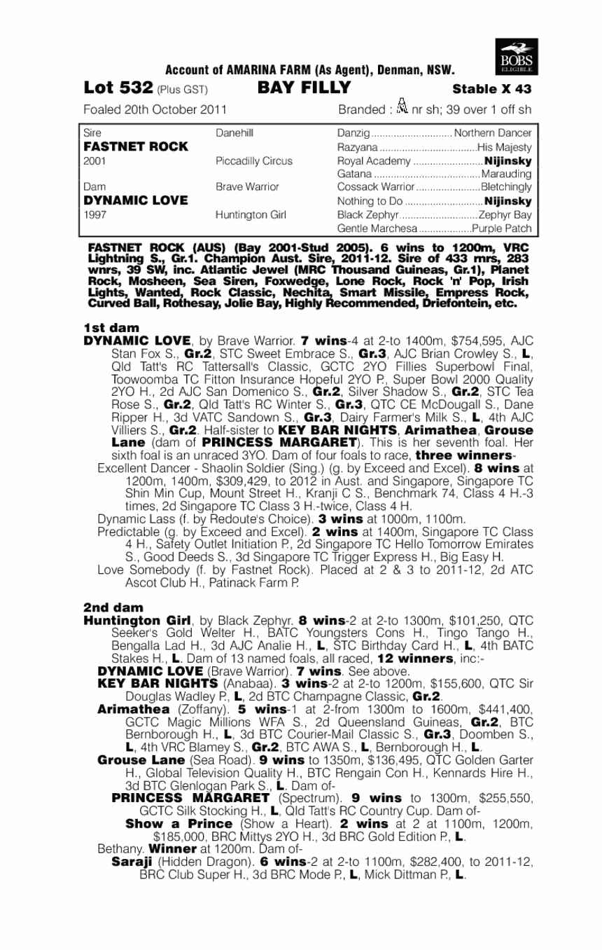 DYNAMIC SYNDICATIONS have purchased what can only be described as one of the best buys of the sale when we secured lot 532, a FASTNET ROCK – DYNAMIC LOVE filly.
