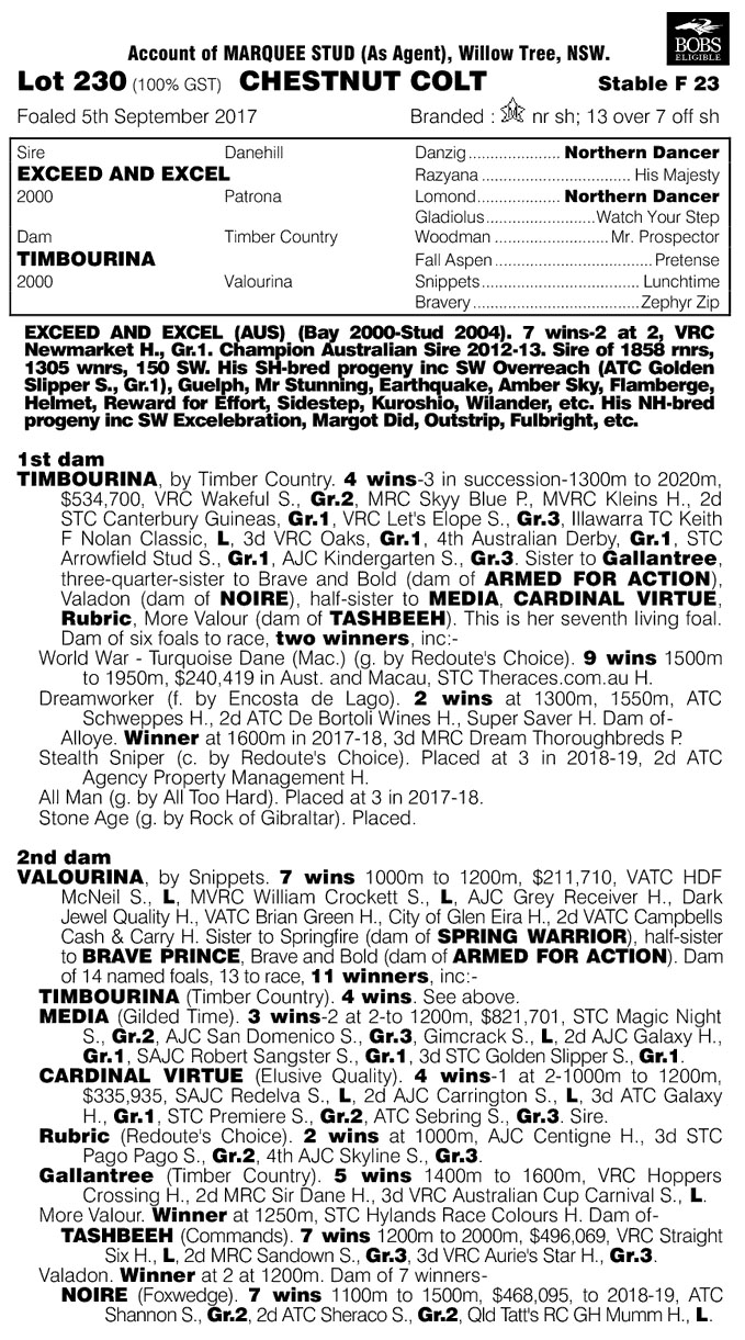 Lot 230 $150,000 + GST EXCEED AND EXCEL ex TIMBOURINA Chestnut Colt (Marquee)