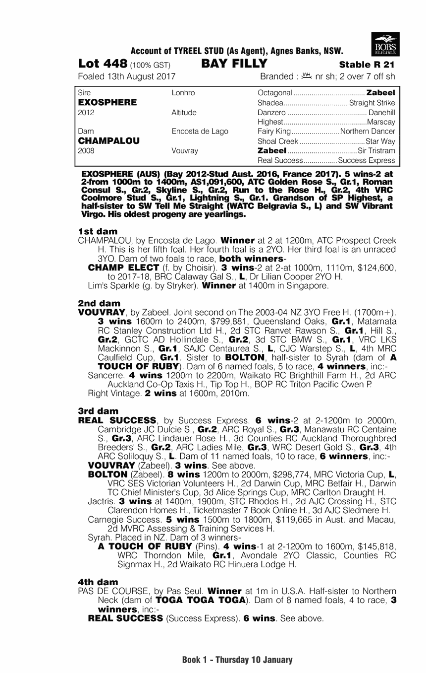 Lot 448 $140,000 + GST EXOSPHERE ex CHAMPALOU Bay Filly (Tyreel)