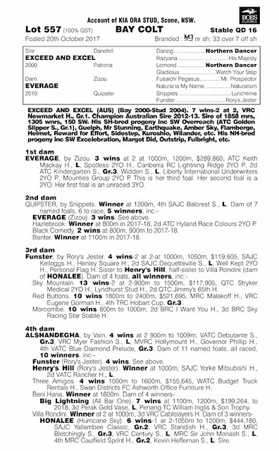Lot 557 $90,000 + GST EXCEED AND EXCEL ex EVERAGE Bay Colt (Kia Ora)